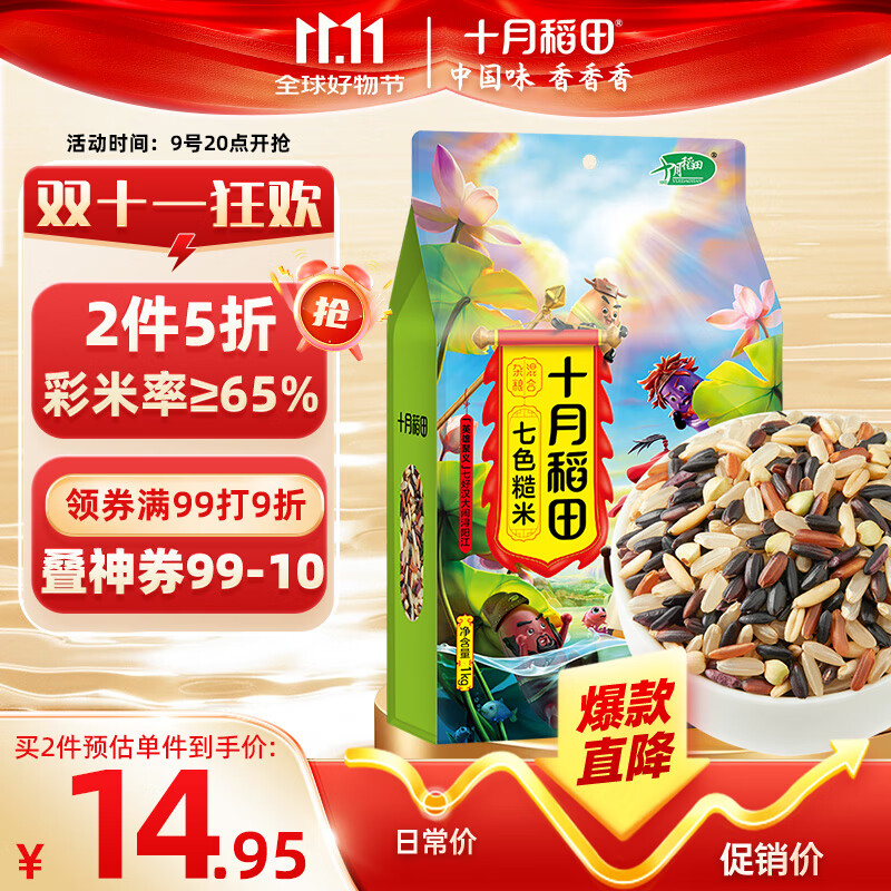包邮 十月稻田 七色糙米 1kg 糙米 黑米 红米 燕麦米 杂粮粗粮 大米伴侣 2斤
